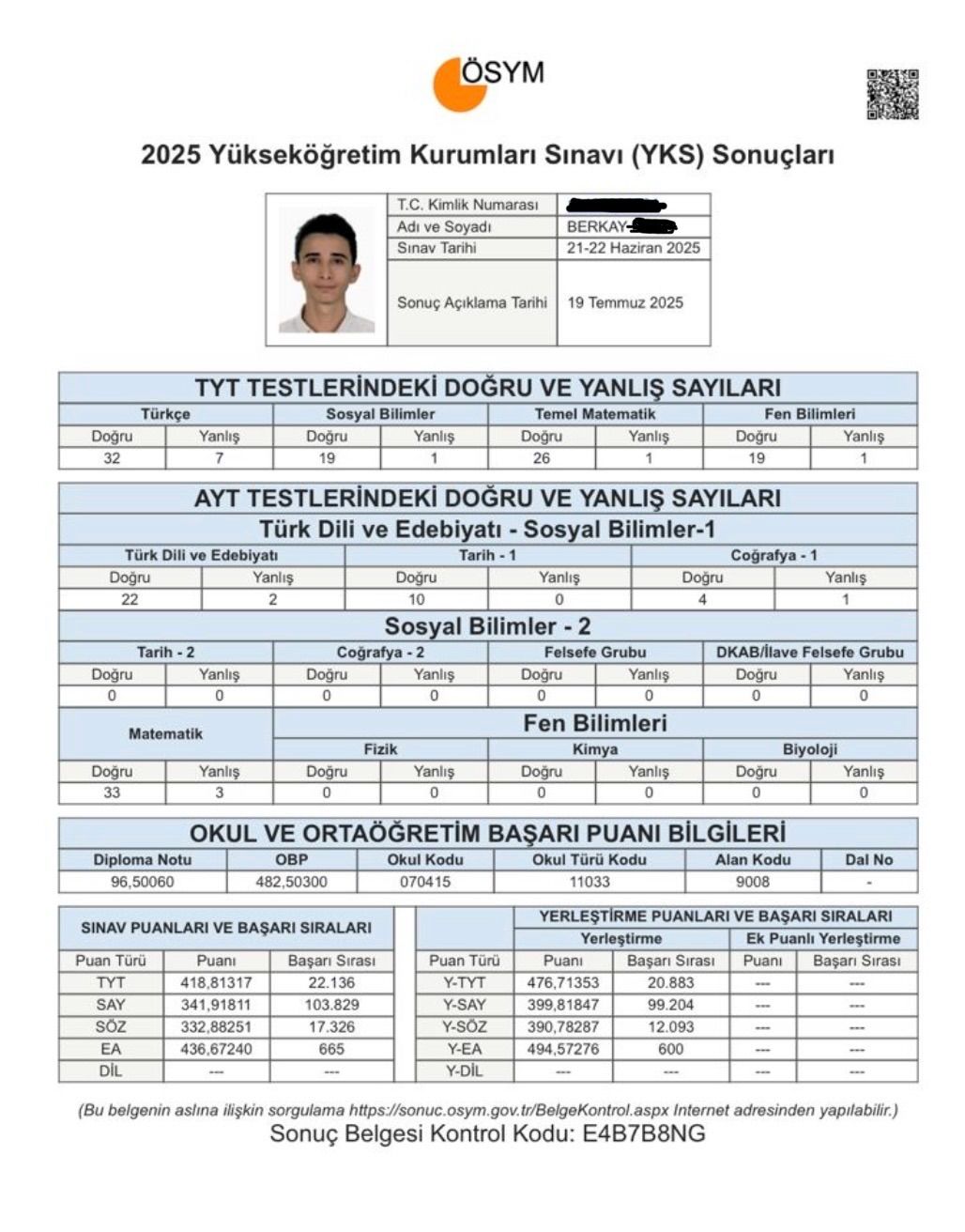 Selamlar! Ben Berkay. 2025 YKS’de Eşit Ağırlık alanında Türkiye 600.’sü, 2025 MSÜ’de ise Türkiye 788.’si oldum. Galatasaray Üniversitesi İşletme bölümünü kazandım ve şu an hazırlık sınıfıma devam ediyorum. Sınav sürecim boyunca her şey hep kusursuz ilerlemedi. Denemelerde iniş çıkışlar yaşadım, zaman zaman motivasyon kaybı hissettim ve programımı yeniden düzenlemem gereken dönemler oldu. Bu süreç bana şunu öğretti: Başarı, sadece çok çalışmak değil; doğru stratejiyle ve disiplinle ilerlemektir. Hazırlık sürecimde özellikle deneme analizine odaklandım. Yanlışlarımı sistemli şekilde takip ederek eksiklerimi belirledim ve çalışma planımı kendime göre şekillendirdim. Verimli olmayan yöntemleri bırakıp işe yarayan tekniklere yoğunlaştım. Düzenli tekrar, analiz ve istikrarlı çalışma sürecin en kritik parçalarıydı. Sınav döneminde sosyal hayat–ders dengesini korumaya özen gösterdim. Çünkü mental olarak güçlü kalmanın akademik başarı kadar önemli olduğuna inanıyorum. Disiplinli ama sürdürülebilir bir sistem kurarak hedefime ulaştım. Şimdi bu süreci yaşayan biri olarak, öğrencilerin kendi sistemlerini kurmalarına, motivasyonlarını korumalarına ve sınav sürecini daha bilinçli yönetmelerine destek olmak istiyorum. Doğru planlama ve doğru yönlendirmeyle herkes potansiyelinin çok daha üstüne çıkabilir. Hazırsan, bu süreci birlikte en verimli şekilde yönetebiliriz.