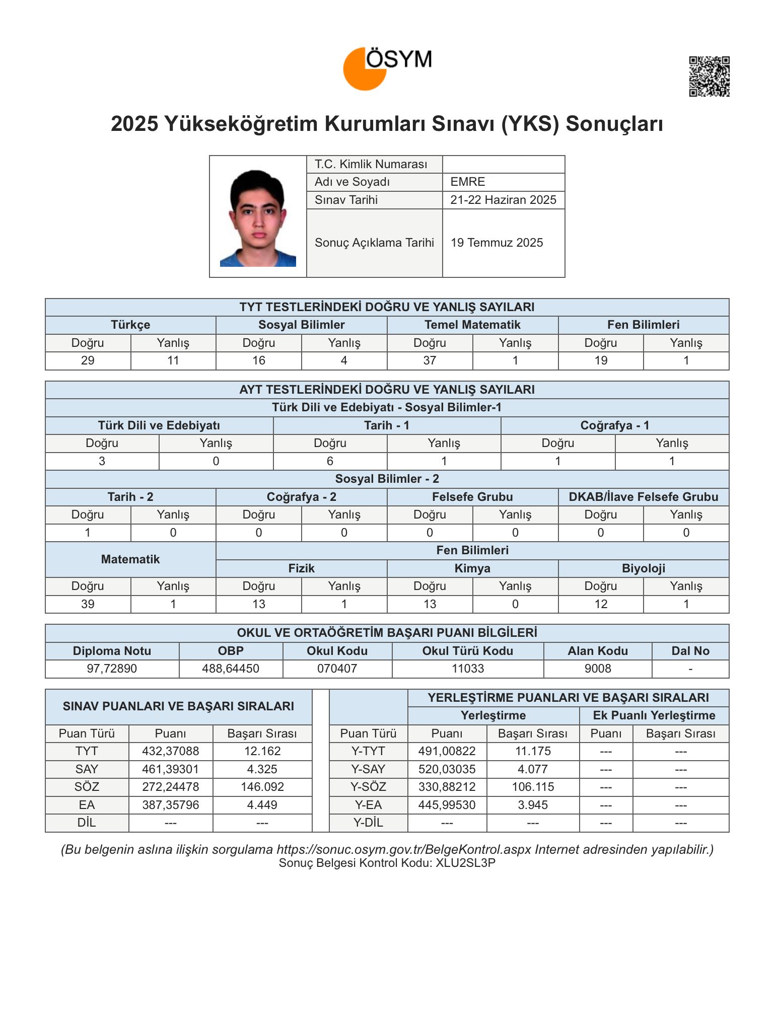 Merhaba, ben Emre. Sınava girdiğim ilk sene olan 2025 YKS'de sayısalda 4.077, TYT'de ise 11.175. oldum ve Ege Üniversitesi Tıp Fakültesi'ne yerleştim. Sınava 9. sınıfın ilk gününden beri hazırlandım diyebilirim. 9 ve 10. sınıflarda temelimi sağlam tutarak 11. sınıfa geçtim. 11. Sınıfta ise artık tam anlamıyla kendimi YKS'ye hazırlamaya başladım. 11 ve 12. sınıflarda çalışmamı günden güne arttırarak hedefim olan tıp fakültesini kazanmayı başardım. Bu süreçte her zaman disiplinli bir şekilde çalıştım. Zaman zaman motivasyonum düşse de bunun bi süreç olduğunun bilinciyle çalışmaya devam ettim. Tecrübelerimle başarıya giden yolda size yardımcı olmaktan ve hedefinize ulaştığınızı görmekten çok mutluluk duyarım. Hepinize başarılar dilerim.