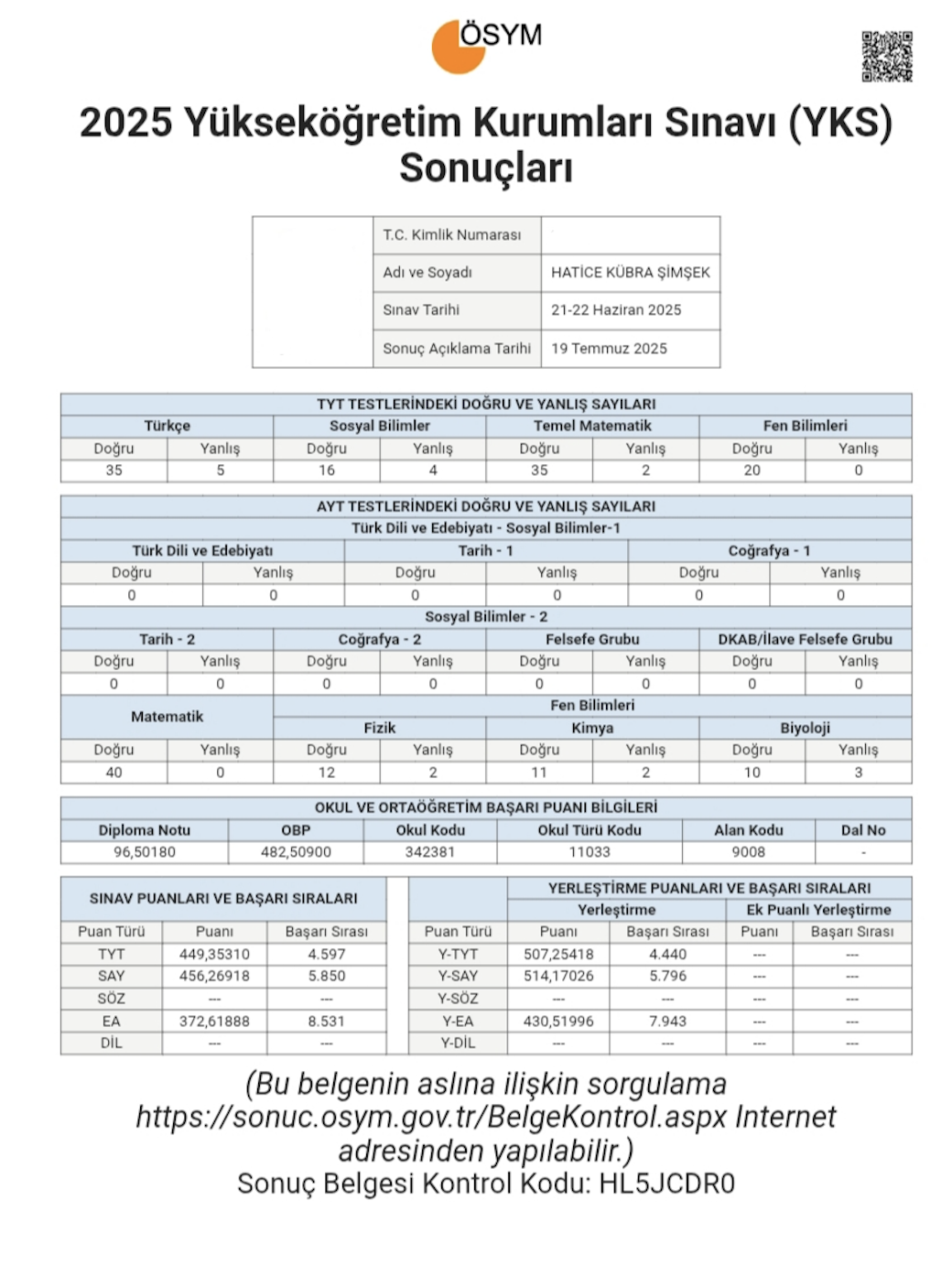 Selam!Ben Kübra. 2025 YKS’de sayısal alanında 5796. oldum,İTÜ elektrik mühendisliğine yerleştim. İyi bir öğrencilik hayatım olsa da sınava asıl 12. sınıfa geçtiğim yaz tatilinde başladım fakat okulun başlamasıyla düzenim altüst oldu. Okul ve dershaneyi bir arada götüremedim.Dershaneden verim alamadığımı,yazın kendi başıma iyi çalışabildiğimi fark edince sınava beş ay kala dershaneyi bırakıp ben de koçluk aldım. Geri kalan zamanı iyi değerlendirsem de yaptığım sıralama beni tatmin etmedi. 23 binle mezuna bıraktım. Mezun senemde YouTube üzerinden çalıştım. Bu zorlu süreçte yaptığım en doğru şey disiplini elden bırakmamak oldu. Mezun senesi düzgün yönetilmediğinde kötü bir sürece dönüşebilir. Bundan dolayı bunaldığım zamanlarda çalışma saatlerimi azalttım ama gün içinde çalışmayı bırakmadım.Geçen seneki hatalarımı tekrarlamamaya dikkat ettim. Deneme analizlerine önem verdim. Bir hedefimin olduğunu kendime daima hatırlattım. İki yıllık sınav deneyimime dayanarak bu işin aslında bir irade terbiyesi olduğunu söyleyebilirim. Her şey kendinize inanmaya ve hedefiniz için çaba sarfetmenize bağlı. Sınav sürecinde defalarca hata yaparak verimli ve doğru çalışmayı öğrendim. Amacım senin benim yaptığım hatalara düşmeden en güzel şekilde bu zorlu maratonu tamamlaman. Edindiğim tecrübeyle sana yardımcı olmak için sabırsızlanıyorum!