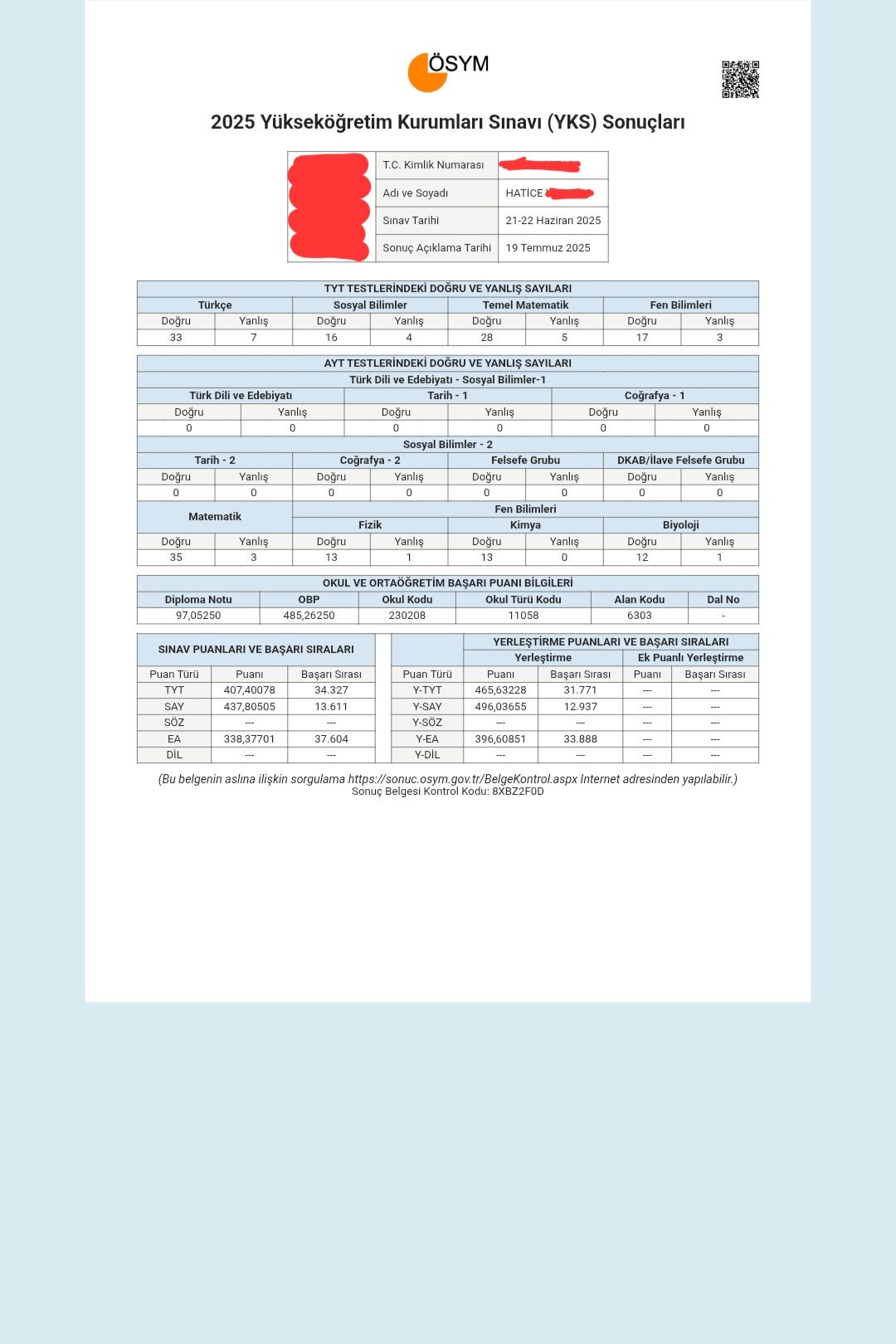 Merhaba, ben Hatice. 2025 yılında girdiğim YKS sınavında sayısal alanında 12 937. oldum. Erciyes Üniversitesi Tıp Fakültesi'nde 1.sınıf öğrencisiyim. Fen lisesi çıkışlı olmama rağmen ilk senemde okuldan verim alamıyordum, sınavı yeterince kavrayamamıştım ve süreci iyi yönetememiştim, ders çalışmama rağmen bir türlü olmuyor hissiyatı vardı dolayısıyla çok fazla sınav kaygısı yaşıyordum. Bu da denemelerimi ve ders çalışmamı etkiliyordu. Sınav sonucum istediğim gibi gelmeyince mezuna kaldım. Mezun senemde rehber öğretmenimden destek alıp kütüphanede bireysel çalışıyordum. Bu süreçte Youtube'dan çok faydalandım. Birçok farklı hocadan konuyu dinleyip hangi konularda hangi hocaların daha iyi anlattığını keşfettim. Konu anlatımını Youtube üzerinden hallettikten sonra soru bankası ve deneme çözdüm. Mezun senemde benim için en çok fark yaratan olay kesinlikle soru bankalarına ve denemelere yaklaşımım oldu. Bireysel çalışmak mezun senesinde bana çok şey öğretti. Bildiğim her şeyi unutup kendime bir çalışma sistemi oluşturdum, yeni bir çalışma stili edindim. Derslere ve denemelere nasıl yaklaşmam gerektiğini anladım ama en önemlisi kaygıyla nasıl baş edeceğimi öğrendim. Mezun senesi psikolojisi zordur ve bu süreçte kendi mentalimi korumayı öğrendim. Her anlamda "iyi ki" dediğim bir sene oldu benim için. Amacım aynı yollardan geçmiş biri olarak tecrübelerimle sana yardımcı olmak. Bu süreci beraber en iyi ve en verimli şekilde geçirebilmek. Şimdiden yolun açık olsun, görüşmek üzere!