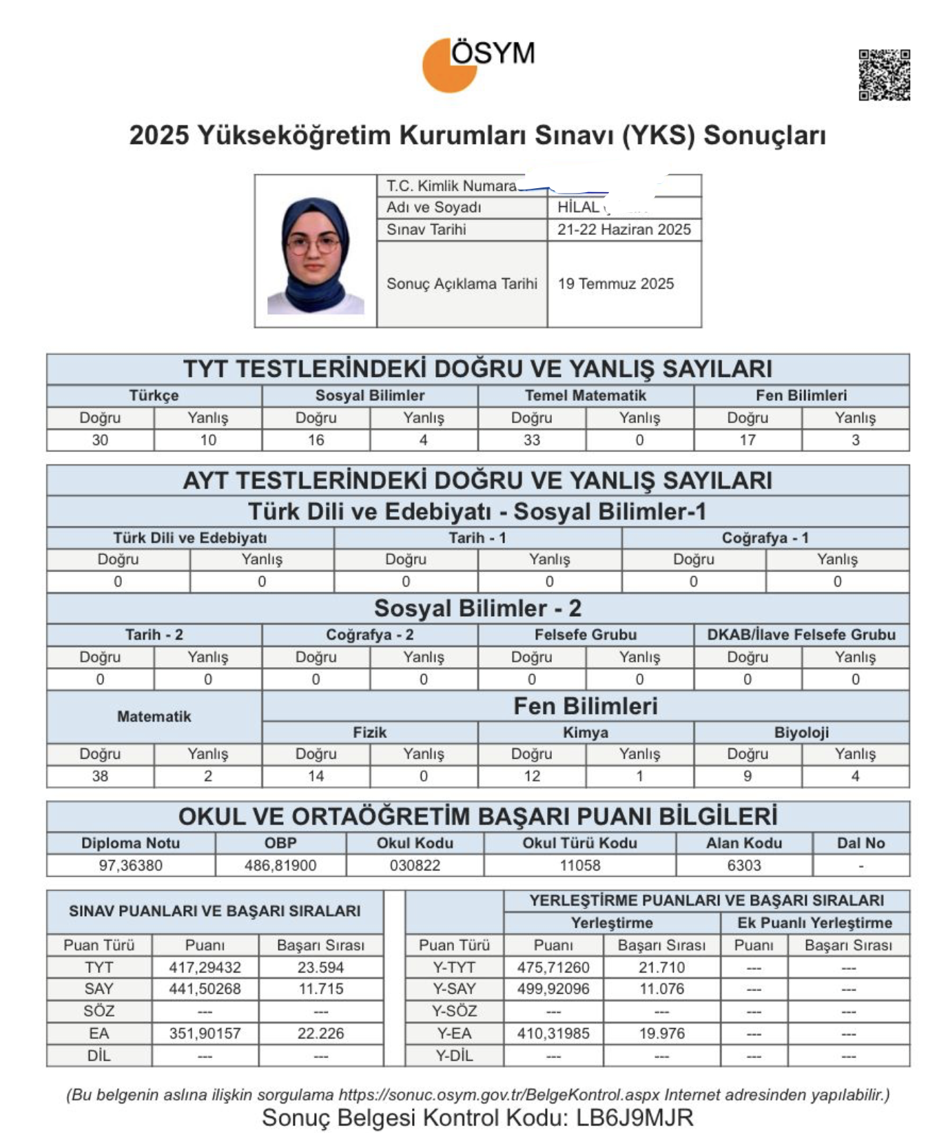 Selam, ben Hilal. 2025 YKS’de sayısal alanda 11076. oldum. Şu anda Kocaeli Ünüversitesi Tıp Fakültesinde okuyorum. Benim sürecim ilk olarak 2024 YKS ile başladı. Benim için stresimi kontrol edemediğim bir yıldı. Sürekli geride kalmış hissediyordum. Bu da tabii ki ders çalışmamı büyük ölçüde etkiledi. AYT’yi bitirememiş olarak sınava girdim. Sonucunda da mezuna kaldım maalesef. Benim için bir tecrübe yılı oldu aslında. Mezun senemde neyi ne zaman çalışmam gerektiğini, stresimi yönetebilmeyi, kullanmam gereken kaynakları daha iyi öğrenmiştim. Dershaneye veya özel derse gitmediğim için bu süreçte yanımda olabilecek, tıkandığım zaman yol gösterecek birine ihtiyaç duyup bir derece öğrencisinden koçluk almıştım ben de. Koçumla beraber haftalık planımı yapıp gün içinde neler yaptığımı raporluyordum. Verimli bir süreç geçirmiştik beraber. Koçluk öğrencisinin bir koçtan neler beklediğini aynı süreçten geçtiğim için iyi bildiğimi düşünüyorum. Sınav yılında tüm bu deneyimlerimi aktarabilmek, motivasyonun düştüğünde, destek olabilmek, seni hedeflerine ulaştırabilmek için sabırsızlanıyorum. Şimdiden başarılar dilerim. Görüşmek üzere.