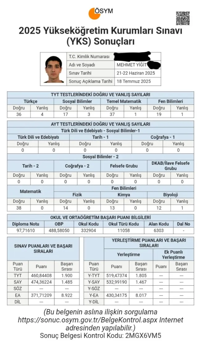 Merhaba arkadaşlar, Ben Mehmet Yiğit ! YKS 2025'te sayısal da 1467. oldum ve İTÜ uçak mühendisliğine yerleştim. Ciddi YKS çalışmaları benim için 12.sınıfta başladı diyebilirim öncesindeki sınıflarda ise çoğumuzda olduğu gibi yazılı zamanı yaptığımız çalışmalarla geçti . 11 ve 12. Sınıflarda dershaneye gittim her ne kadar belli bı kısmı vakit kaybı olsada ben bunları da iyi değerlendirmek için elimden geleni yaptım. Gerek YouTube dan gerek kitaplardan tekrar tekrar öğrendim konuları ve üstüne soru çözerek zihnime işledim. Evet bu sınav bir çalışma sınavı fakat bu süreçte psikolojimizi, sosyal hayatımızı, uyku düzenimizi korumak da bı o kadar önemli ve ben bunları hatalar yapa yapa öğrenmis biri olarak sana yardım etmek için burdayım. Beraber bunların üstesinden gelerek senin için en iyi olanı bulabileceğimize inanıyorum. Umarım bu yolda hedeflerine ulaşırsın , başardıgğını görmeyi sabırsızlıkla bekliyorum:) Görüşmek üzere.