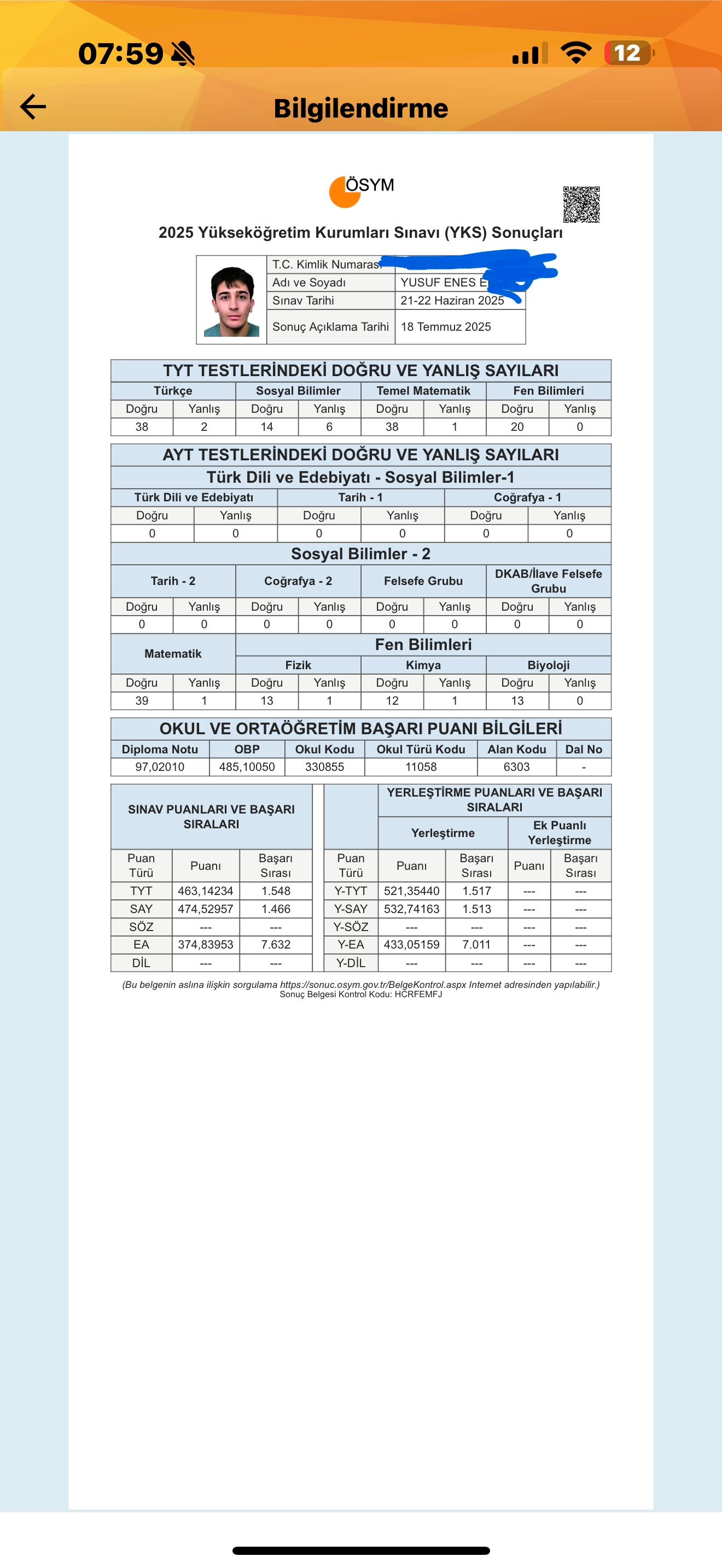 Selam, ben Enes. YKS 2025’te sayısal 1466. olarak Hacettepe Üniversitesi Tıp Fakültesine yerleştim. Şu an hazırlık öğrencisiyim. Açık konuşayım: 9. ve 10. sınıfı çok iyi değerlendiremedim. 11. sınıfta AYT’yi sağlam tutmaya çalıştım, TYT’yi ise daha çok hafta sonu denemeleriyle götürdüm. 12. sınıfta dershaneye gittim ama bana katkı sağlamadığını fark edince ikinci dönem bıraktım. Süreç boyunca netlerim çok dalgalandı. Buna rağmen motivasyonumu mümkün olduğunca yüksek tutmaya çalıştım. Sadece ders çalışmadım; sosyal hayatı, sporu ve mental dengeyi tamamen bırakmadan ilerlemeye özen gösterdim. Stresi yönetmenin, süreci sürdürülebilir kılmanın ne kadar önemli olduğunu yaşayarak öğrendim. Bu yolculukta çok hata yaptım. Ama o hatalar bana şunu kazandırdı: • Hangi hatanın neye mal olabileceğini • Nasıl daha doğru bir yol izlenebileceğini • Bu sürecin nasıl daha keyifli ve yönetilebilir hâle getirilebileceğini Şimdi bu tecrübelerimle; sizi, hedeflerinizi ve düzeninizi tanıdıktan sonra bu süreci birlikte en verimli şekilde yürütmek ve sizi hedeflerinize yaklaştırmak için gerçekten istekliyim. Eğer “yalnızca ders değil, sürecin tamamında yanında olacak biri” arıyorsan, sana yardım edebilirim. Şimdiden hepinize başarılar diliyorum. Görüşmek üzere.